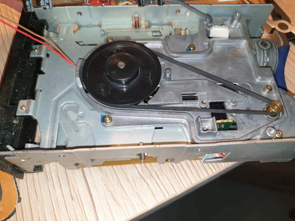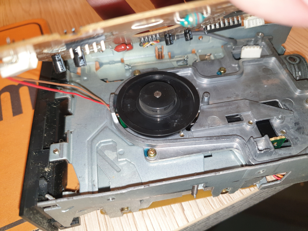 Die beiden Laufwerke wieder wie im Teil 1 beschrieben öffnen, bzw. die Elektronikplatine anheben, um an das Antriebsrad zu kommen.