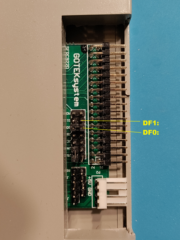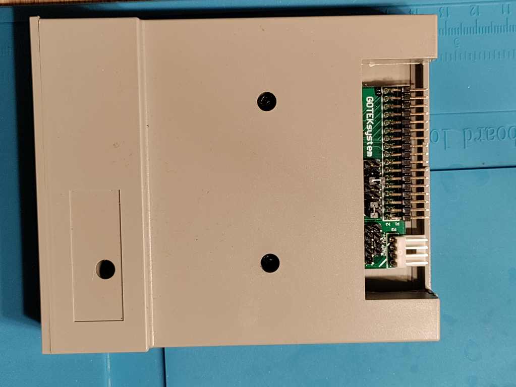 Damit sollte das GoTek eigentlich funktional fertig sein. Über die Jumperleiste hinter dem Floppyanschluss wird das Laufwerk konfiguriert.