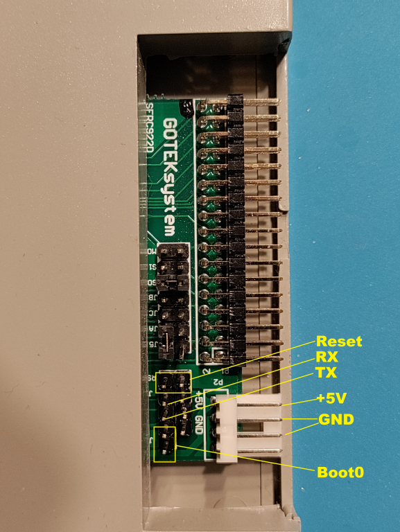 Nach dem Flashen nicht vergessen den Jumper von Boot0 zu nehmen, sonst ist das GoTek weiter im Programmieren-Modus.