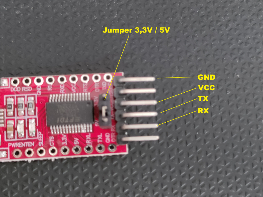 Als Firmware für das GoTek habe ich mir den Cortex Amiga Floppy Emulator ausgesucht. Um die Firmware auf das GoTek zu spielen braucht man - sofern keine COM-Schnittstelle vorhanden - einen USB zu RS232 Wandler. Ich habe mich für den FT232RL USB-TTL Serial Modul entschieden und über ebay gekauft. Dieses bietet neben 3,3V auch 5V aus Ausgangsspannung.